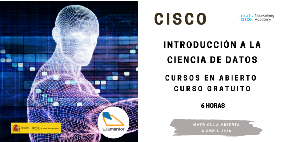 El programa Aula Mentor anuncia la apertura de matrícula del curso Introducción a la Ciencia de Datos, una formación online diseñada para dar los primeros pasos en uno de los ámbitos con mayor proyección profesional. Este curso, desarrollado en colaboración con Cisco Networking Academy, permite al alumnado descubrir cómo los datos se han convertido en […]