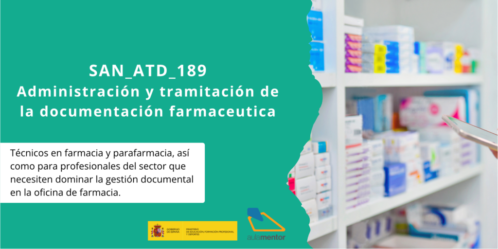 Administración y tramitación de la documentación farmacéutica Ya está abierta la matrícula para el curso SAN_ATD_189: Administración y tramitación de la documentación farmacéutica, una formación imprescindible para quienes trabajan o desean trabajar en el ámbito de la farmacia y la gestión documental sanitaria. Este curso está dirigido especialmente a Técnicos en Farmacia y Parafarmacia, así como a profesionales […]